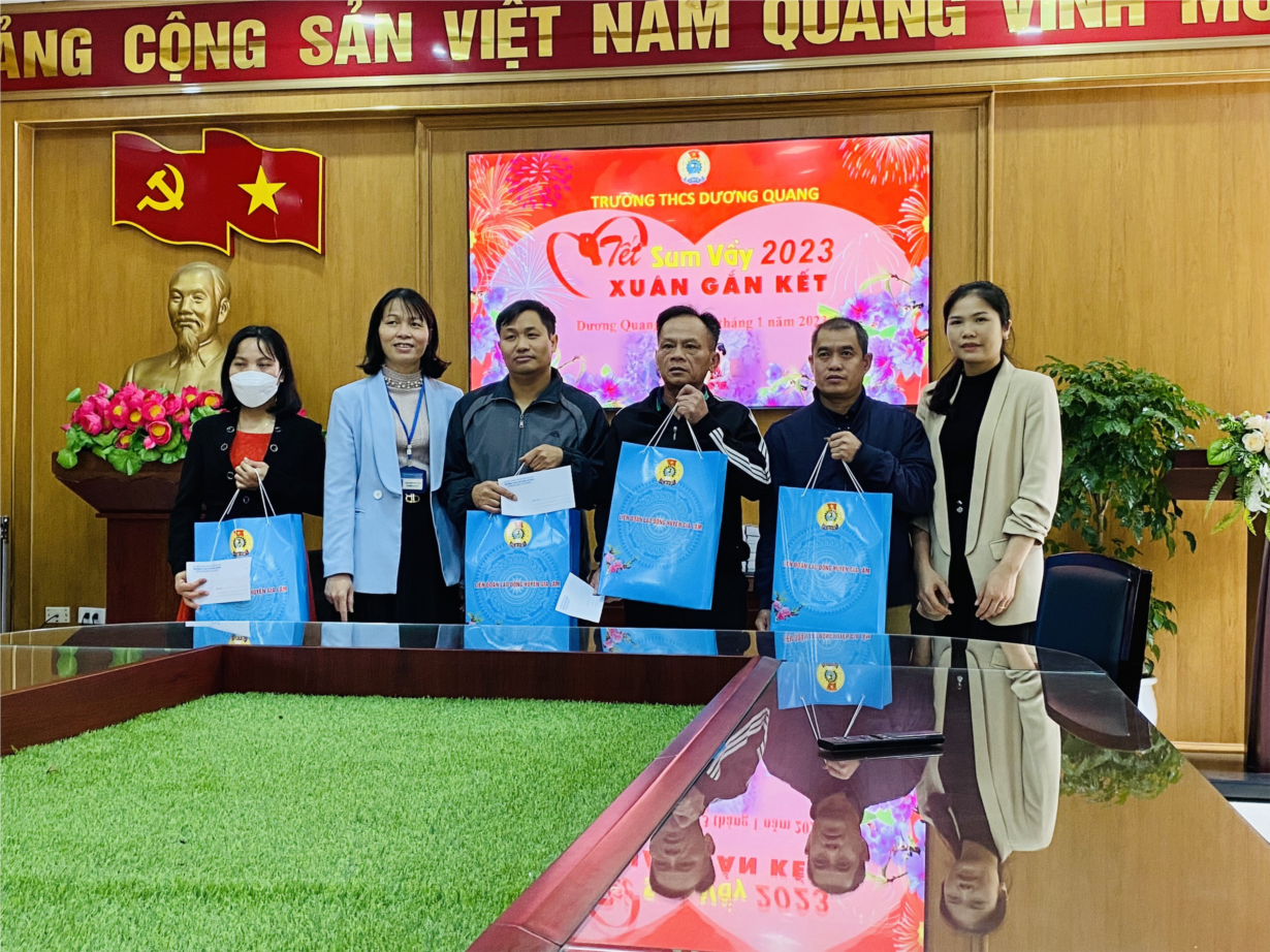 Ngày 13/1/2023, Công đoàn Trường THCS Dương Quang trao quà Tết cho đoàn viên Công đoàn có hoàn cảnh khó khăn.