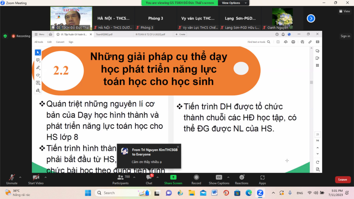 Ngày 11/7/2023 các giáo viên nhóm Toán trường THCS Dương Quang đã thực hiện tập huấn sách giáo khoa lớp 8 môn toán theo kế hoạch